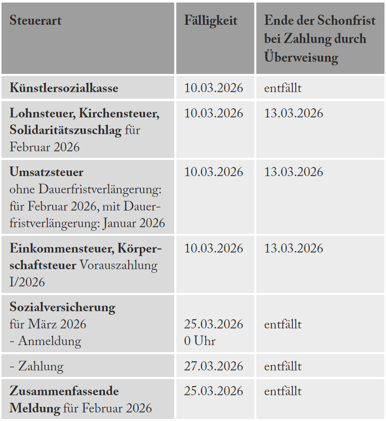 Steuertermine März 2026