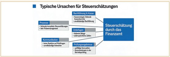 Viele Schätzungen beginnen nicht mit Manipulationen, sondern mit Nachlässigkeiten. Eine verspätete Erklärung, eine unsauber geführte Kasse oder unbeantwortete Anfragen des Finanzamts reichen oft aus, um eine Schätzung auszulösen. Die Folgen sind für Ihr Unternehmen gravierend: hohe Nachzahlungen und langwierige Auseinandersetzungen. Umso wichtiger ist es für Sie, die typischen Auslöser zu kennen und gezielt zu vermeiden.